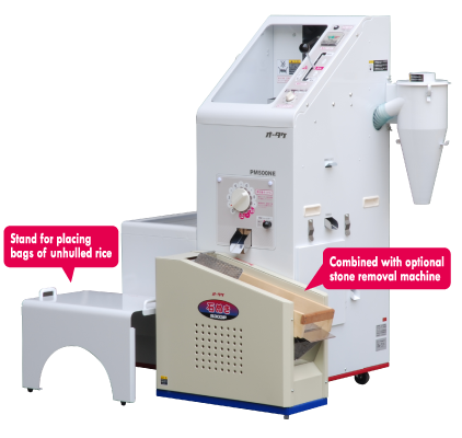 Two-in-one: a machine for rice hulling and milling.
